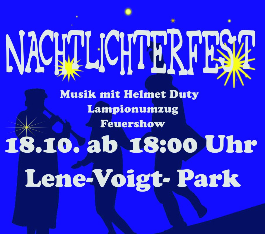 Das Fest ist ein familenfreundliches Ereignis, das zum Zuhören, zusehen und mitmachen einlädt. Neben der Musik bei untergehender Sonne sind es der Lampionumzug und die Feuershow mit Feuerkünstlerin Bejay, die den kleinen und großen Besucher:innen ein kurzweiliges und spannendes Erlebnis ermöglicht. In diesem Jahr spielen Helmet Duty auf der Bühne des Lene-Voigt-Parks.