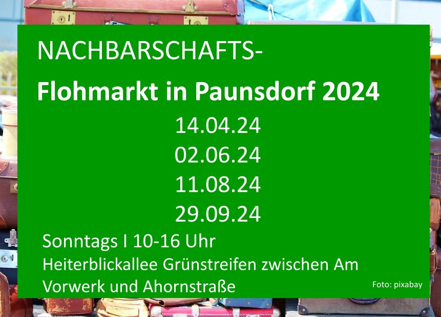 Einmal im Quartal findet in diesem Jahr unser Nachbarschaftströdelmarkt auf der Heiterblickallee statt.
