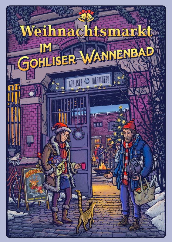 Am 1. Advent ist es endlich wieder soweit: Um 14.00 Uhr öffnet sich die Tür zu einem der kleinsten, aber auf jeden Fall zum romantischsten, unbekanntesten und gemütlichsten Gohliser Weihnachtsmarkt. In Hof und Westflügel des Wannenbades erwarten Euch, rund um Feuerschale und Weihnachtsbaum, etliche Stände mit schönen, netten, nützlichen oder unnützen Sachen, und natürlich auch heißem Punsch und leckeren Speisen.