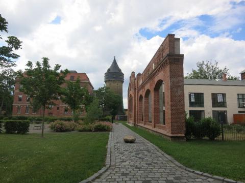 Nach einer Kaffeepause gegen 16 Uhr brechen wir 16.30 Uhr zum Spaziergang auf (ca. 1 ½ Stunden). Dabei erläutert Stadtbezirkskonservatorin Annekatrin Merrem den Umbau des denkmalgeschützten Gebäudekomplexes zum modernen Wohnviertel.